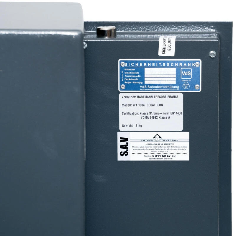 Le laboratoire VdS (basé en Allemagne) fait partie des organismes de certification les plus exigeants en Europe. Il contrôle, valide et certifie via une série de tests d’effraction, la bonne conformité de l’armoire forte selon la norme EN 14450.
