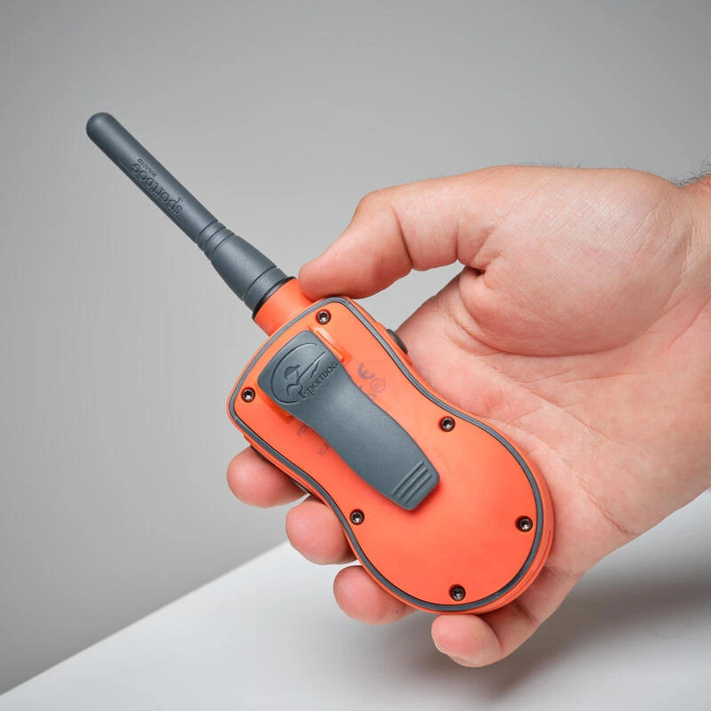 Le SportTrainer 875 de la marque SportDOG est conçu pour la chasse et le dressage sur le terrain. Ce système est équipé d’un écran OLED facile à lire, vous pouvez voir le chien sélectionné, le niveau de stimulation électrostatique, le mode de stimulation et l’état de la batterie en un coup d’œil. Cette fonctionnalité, associée aux deux boutons de grande taille +/- permettant d’alterner facilement entre les chiens, fait du SD-875E un modèle particulièrement adapté à la chasse.