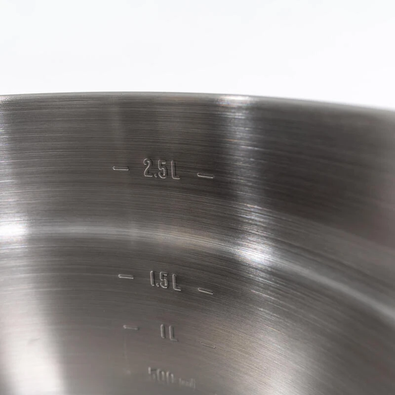 La casserole, qui est graduée pour vous aider à mesurer les volumes et quantités.