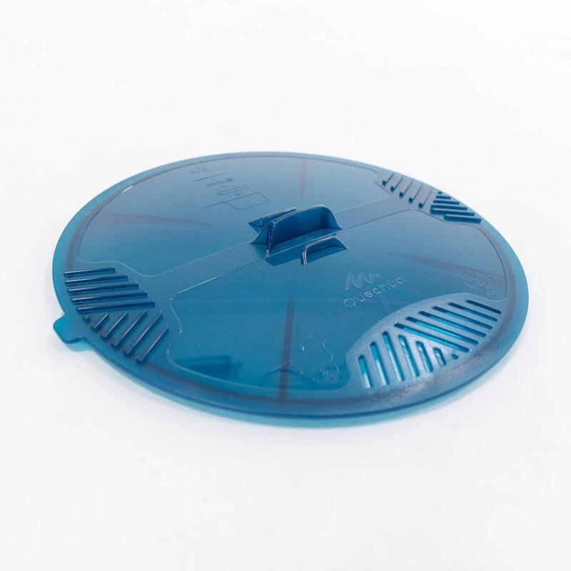 Les éléments se rangent à l’intérieur de la popote. D’abord les 4 assiettes plates puis les couverts qui peuvent se clipser entre eux. Le couvercle se place ensuite et est bloqué par la poignée qui se replie.