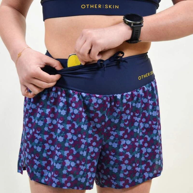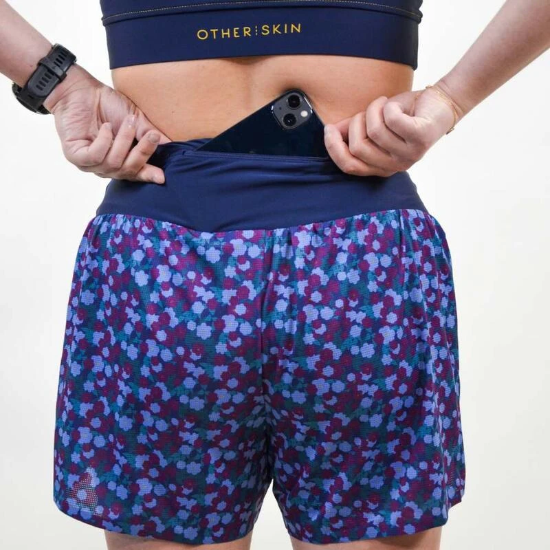 Ce short bleu s’adapte aux femmes avec féminité et praticité : taille haute, 2 poches, cordon de serrage, bandes anti-frottements. Performant et responsable : conçu au Portugal, tissu italien recyclé.